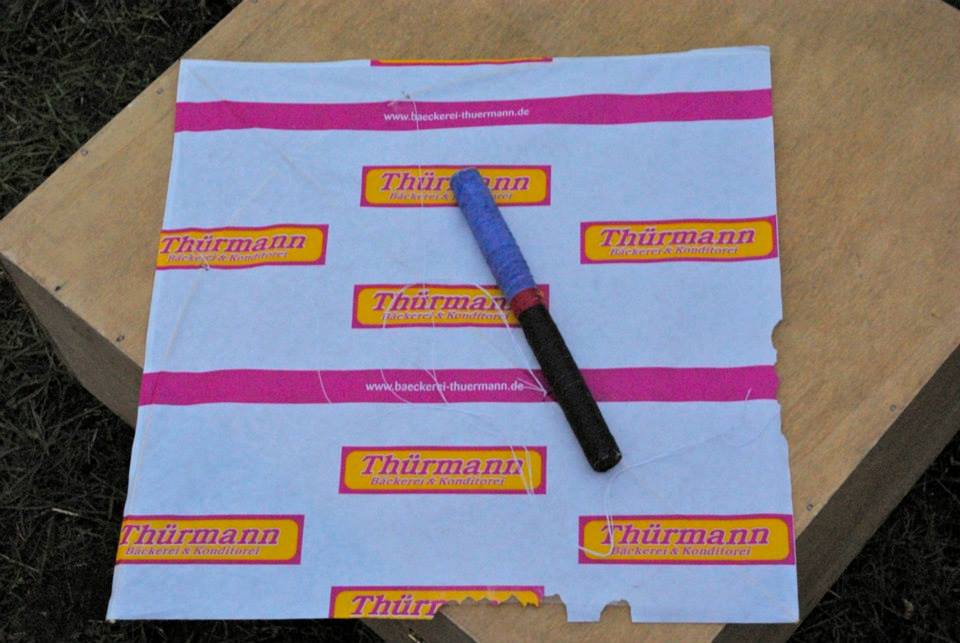 Der Materialbedarf beim fliegen ist sehr übersichtlich. Du brauchst den Kampfdrachen selbst, eine Spule mit geeigneter Flugschnur, eine kleinen Schere und etwas durchsichtigem Klebeband für kleinere Reparaturen,eine Nadel um saubere Löcher zu stechen und etwas Schnur um die Drachenwaage zu knüpfen.